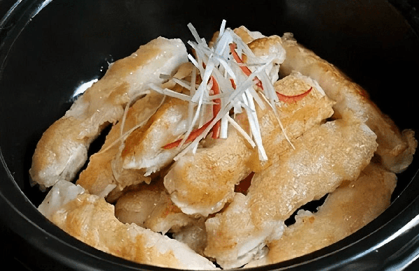 鸡不要浸得太熟,否则口感不佳;香菜、葱不要捞得太久,否则会出水。