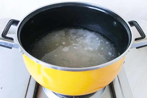 5.锅中加入适量清水,放入糯米碎。