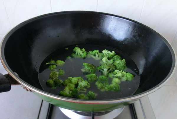 2.西兰花放入滚水中焯水。