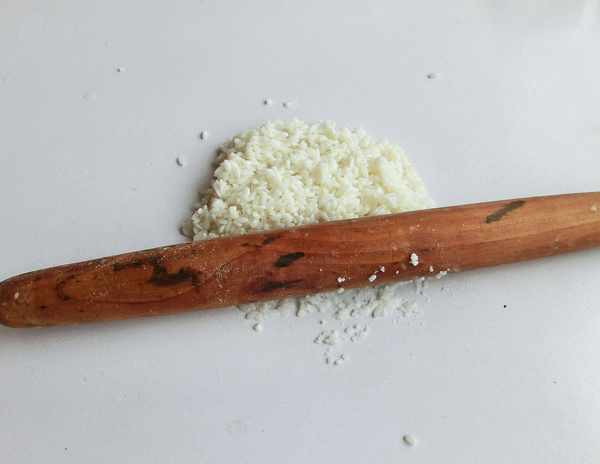 4.糯米压碎。