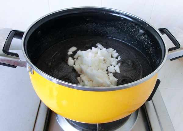 4.锅中放油,放入洋葱炒香。