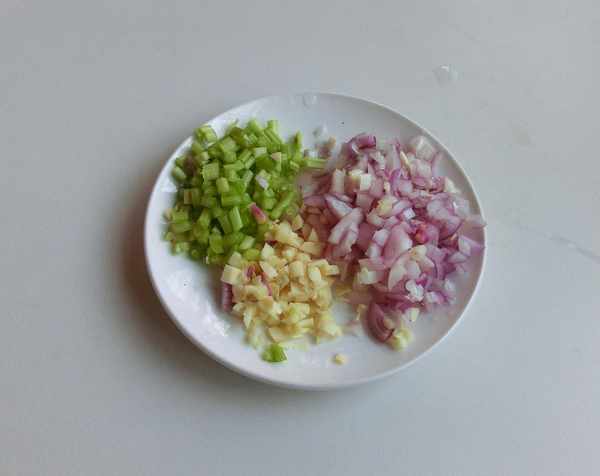 2.蒜、欧芹、红葱头切末。