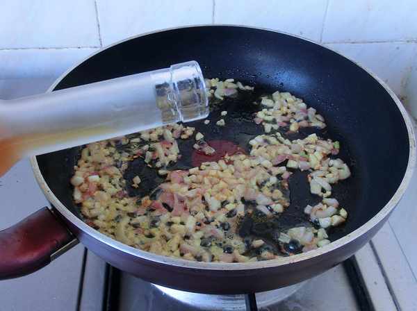 5.加入白葡萄酒。
