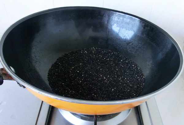 2.黑芝麻放入锅中,炒香。