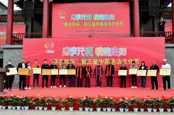 颁发“第三届中国洛汤文化节中国洛菜传承特金奖和金奖”、“新名珍杯第三届中国洛汤文化节信用质量最佳汤馆”、“第三届中国洛汤文化节优秀组织奖”等奖项。