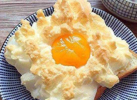 做法:第一步先预热烤箱一百四十度,然后再处理食材,将蛋白和蛋清分隔备用。接着打发蛋清,可以根据个人口味加入适量白砂糖,打发成型后直接涂抹在吐司上,再将蛋黄放置中间,讲究一点的还可以加上火腿丝,放入烤箱烤制十分钟左右便可食用。