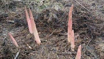 每年六七月份这种植物会像竹笋一样冒出小小紫色的洋合笋笋尖,有特殊香味,形状如鸡蛋般,但比鸡蛋要小好几倍,可食用,很美味。农村长大的孩子应该见过野生的,小时候在麦秸堆里容易长出这种“美味”。