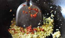 热油翻炒姜末,蒜末,剁辣椒,爆香。