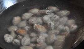 冷水没过花甲,待水烧开,所有花甲张嘴马上捞起来。首先翻看看是不是都张嘴了,然后不能煮太久,不然肉质会老。