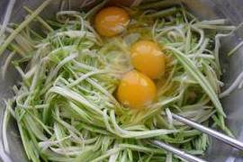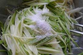 1、西葫芦擦成丝加盐拌匀。