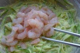 原料:西葫芦一个约250克,虾仁70克,鸡蛋3个,面粉100克。