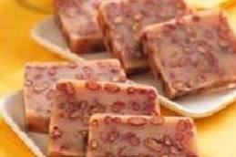 4.将作法2分次倒入作法3锅中,以小火拌搅至成煳状,盛入舖上玻璃纸的模型中,装至约八分满,抹平后放入蒸锅中以中大火蒸40分钟即成。
