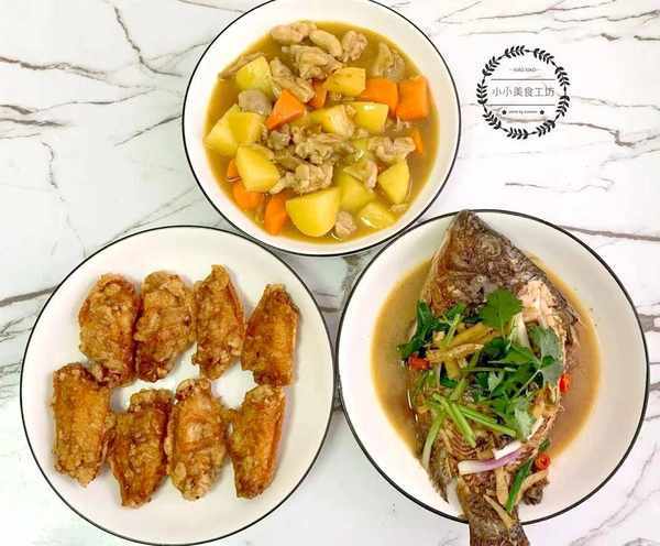 炸鸡翅,孩子最爱的菜品之一,鸡翅提前洗净后放入葱姜,生抽,蚝油和食盐来腌制调味,然后用淀粉,面粉和清水调制炸糊,用腌好的鸡翅裹上炸糊炸至金黄成熟即可。咖喱鸡肉的做法也很简单,先将鸡肉炒熟,加入少许生抽调味,接着倒入热水,放入土豆和胡萝卜块,再放入一小块咖喱,炖煮20-30分钟即可。红烧鱼营养又好吃,处理干净的鱼肉先煎再炖会更香哟。
