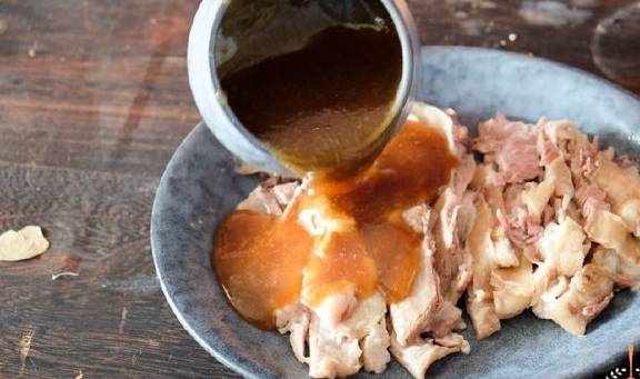 最后等汤汁浓稠之后,我们将水煮锅的牛肉撕成条形状,然后将调制的酱汁倒入羊肉中即可!