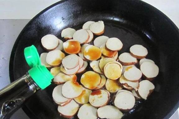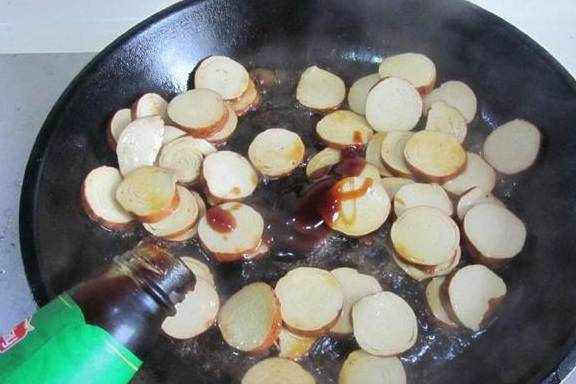 步骤四:等到把生抽倒完并且在锅里面炒开壳后,再把耗油倒一些到锅里面,将它们翻炒消融开