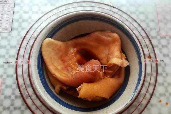 1.猪耳朵洗净后用料酒腌一会洗净去掉腥味。