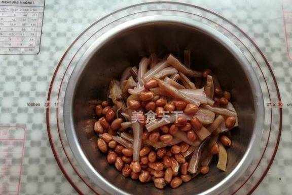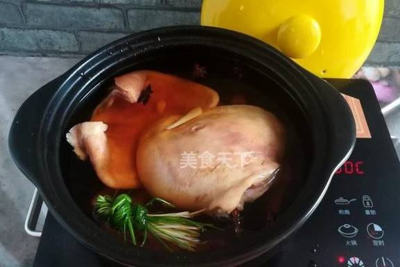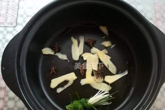 5.猪耳朵连同腌制的老抽一起放入砂锅里。