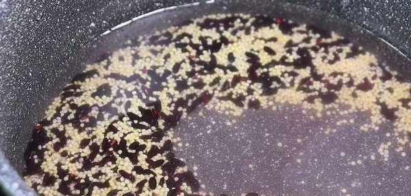 洗干净的小米和黑米倒进奶锅里,锅中加入500ml清水,大火煮开。