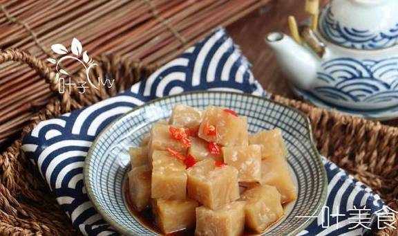 5.放入蒸箱100度30分钟,或者小火煮25分钟,蒸煮都可以哈,蒸好取出,放至凝固即可。切块直接吃,也可根据个人口味加点蒜汁、辣椒、醋都可以!