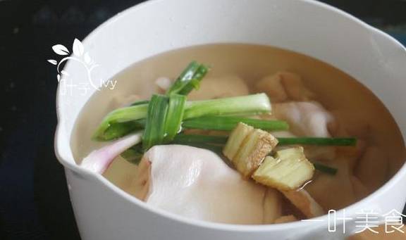 做法:1.洗干净的肉皮放入锅里,加葱、生姜、料酒、醋和冷水,煮10分钟。
