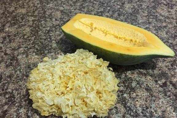 1、准备好食材。木瓜稍微选成熟一些的,这样煮出来糖水的味道才会好一些。
