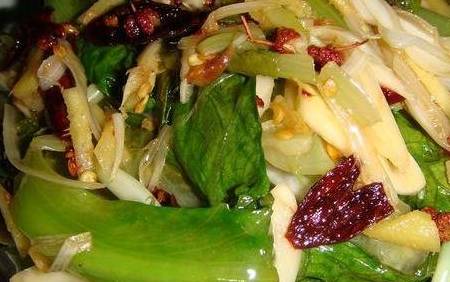 做法:生菜两颗。所需作料。生菜洗净待用。把所有作料切丝花椒拍碎。煮一锅开水把生菜快速的烫一下。锅里把油烧的辣辣的。淋在装作料的碗中,盖上盖子焖5分钟。把作料淋在生菜上拌均匀。