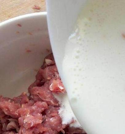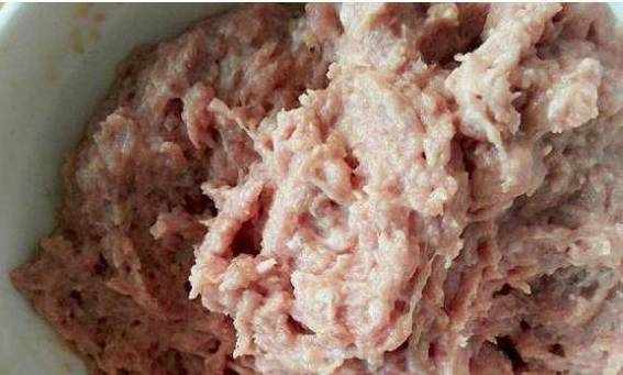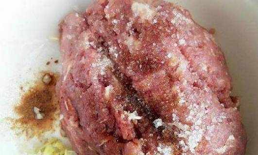 把肉泥放入碗中,并加入葱姜末,调料适量,用手搅拌均匀