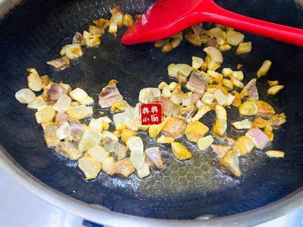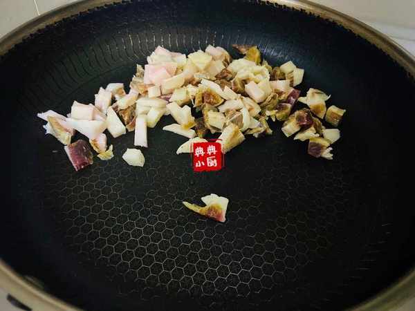 腊肉切成丁,我这个正好里面还有一些瘦肉,其实全用肥肉会更香的。
