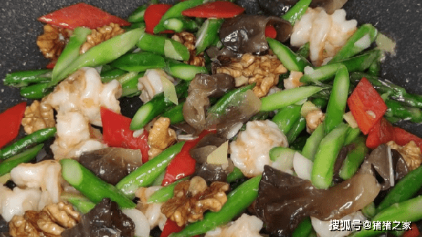 食材:芦笋、虾、木耳、核桃