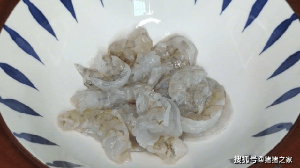 2.准备十几只大虾,去掉虾头,把虾仁剥出来,记得在虾背上划上一刀,取出里面的虾线。全部处理好后,用清水给它清洗干净,挤干水分,加入少许盐、胡椒粉、料酒,搅拌一下,搅再加入少许的淀粉,搅拌均匀备用。