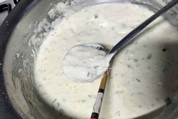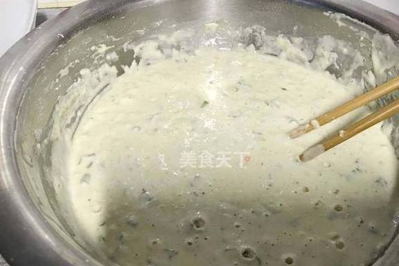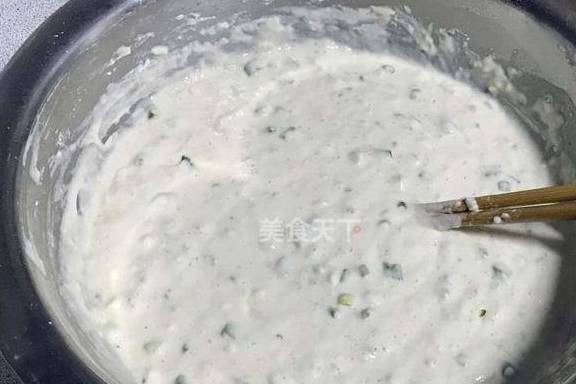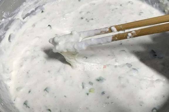8.面糊状态粘稠,自发面粉自带发酵粉,静至30分钟,待它发酵。