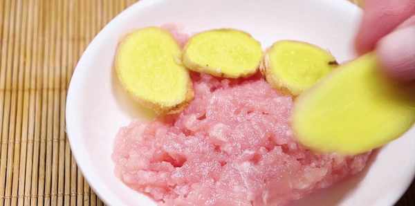 ●猪里脊剁碎后,用生姜去腥辟味,宝宝更容易接受。