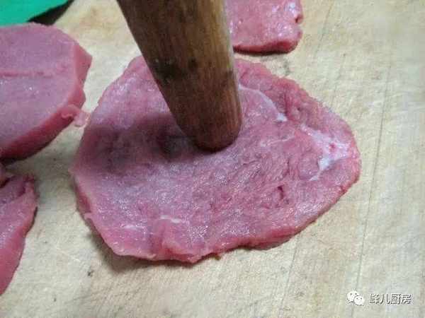 2、用擀面杖使劲敲,直到敲松软,这样更容易入味。
