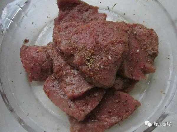 3、加入牛排料,腌渍20分钟,如果没有牛排料,也可以加入胡椒粉、花椒粉、芝麻盐等调味料腌制。