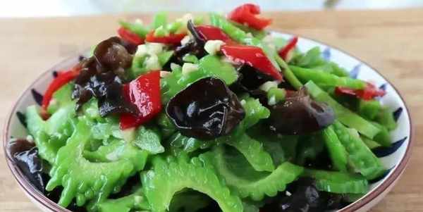 3、锅中水烧开,加半勺盐,一勺油,然后把苦瓜焯水去除苦味。捞出放入凉白开中过一下控水。木耳倒入锅中煮六分钟左右,捞出过凉水捞出,放入碗中,接着把调好的料汁倒入抓拌均匀,就可以了。