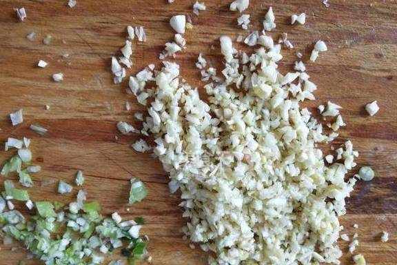 5.蒜葱切碎。