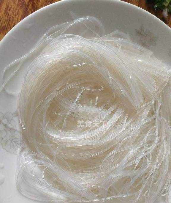 4.粉丝提前泡30分钟,剪两段铺盘底。