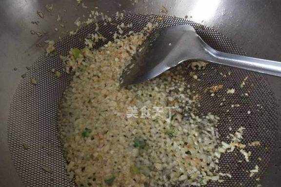 6.锅内放油烧热后,放入蒜蓉末炒出香味。