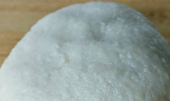 接着用手开始反复揉捏,不停地揉搓将近二十分钟,感觉到糯米已经非常黏稠,就像面团一样,女生力气比较小,就需要揉的时间更长一点,大概揉了半个小时,揉成一个非常劲道的面团就可以了,就算里面有一些颗粒也没关系,这样不影响口感,接着搓成长条,再用刀将糯米条切成大小相似的糯米团。