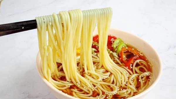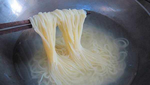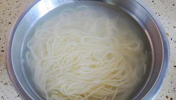 冷面是熟的,需要用清水洗一下,冷水下锅,煮好的面条颜色是时尚的。