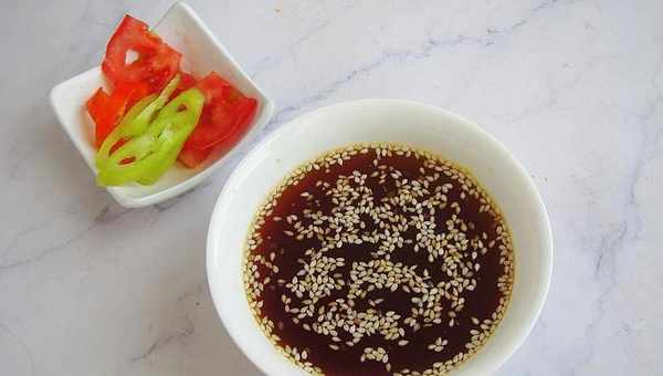先来调汁,一勺8克轻盐酱油,一勺清香米醋,也可以按照自己喜欢的气质加减,随时尝尝再添加。