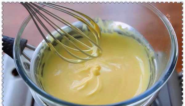(2)爆浆部分:蛋黄2个,白糖18g,玉米淀粉3g,低粉4g,牛奶150g,黄油10g,盐少量,淡奶油130g,白糖12g