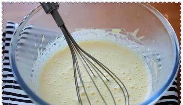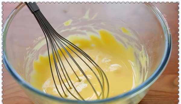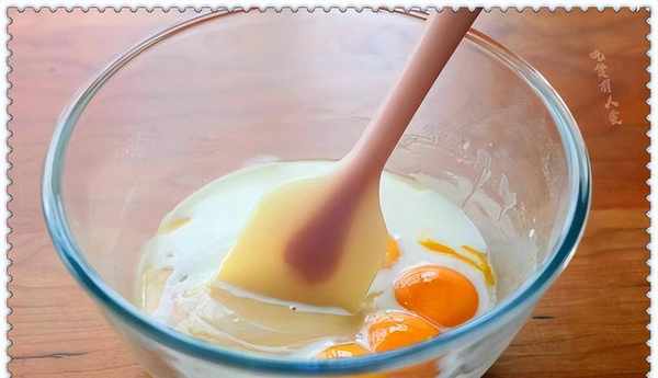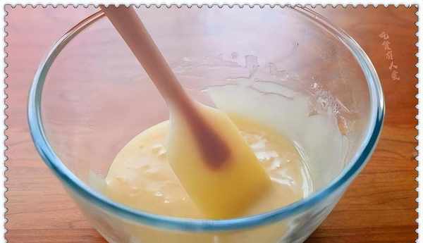 (2)加入牛奶和蛋黄,充分搅拌均匀。
