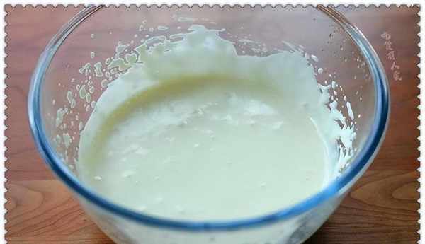 (14)分次将其加在奶糊中就可以,最后搅拌至黏稠状态就好了。