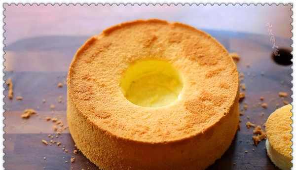 (12)烤好的蛋糕从模具中拿出来,从中间挖出来一部分,不要挖空。