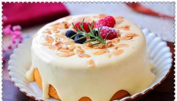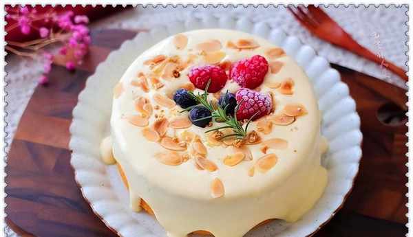 (17)最后在表面撒上熟杏仁儿片和水果简单装饰一下。