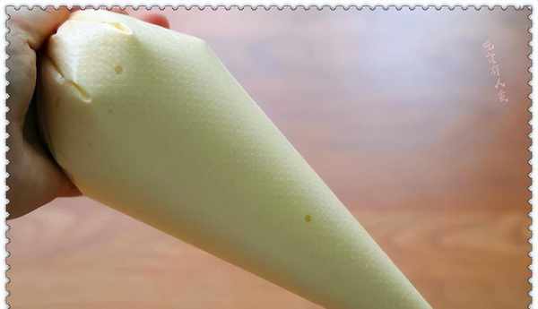 (15)将准备好的奶糊装在裱花袋中,头上剪一个小口。
