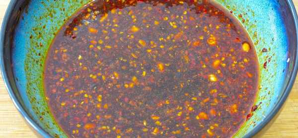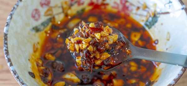 7、蒸菜的时候来做个调料,蒜末、生抽、白糖、香醋、香油、辣椒酱,拌匀后搭配蒸菜一起吃特别香。