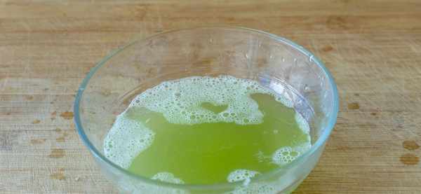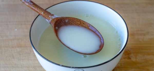 9、趁着蒸丸子的时间来调个酱汁,1勺淀粉,半碗冬瓜水搅拌均匀。