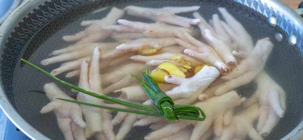 食材:鸡爪、生姜、葱结、卤料包、豆豉、辣椒酱、生抽、老抽、蒜、白糖、蚝油、料酒、五香粉、鸡精、盐、辣腐乳、葱花